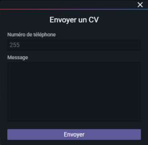 Une fenêtre s'ouvrira afin que vous puissiez écrire votre numéro de téléphone ainsi qu'exprimer votre motivation. Votre CV arrivera directement sur l'ordinateur de l'entreprise et sera visible par les patrons.