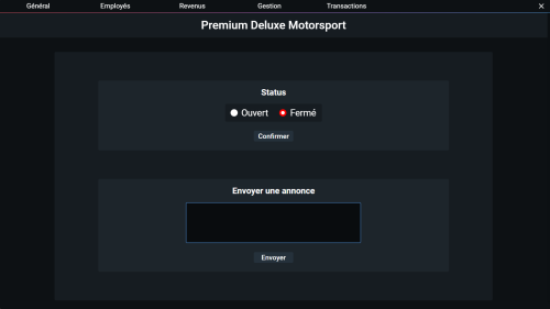 Ce champs de texte, très utile, permet l'envoie d'annonces directement sur l'écran des joueurs et vient en parallèle s'implémenter dans l'application "BizStatus" dans la catégorie respective de l'entreprise concernée. Il est possible de formater le texte pour y ajouter du style si vous possédez un status V.I.P.